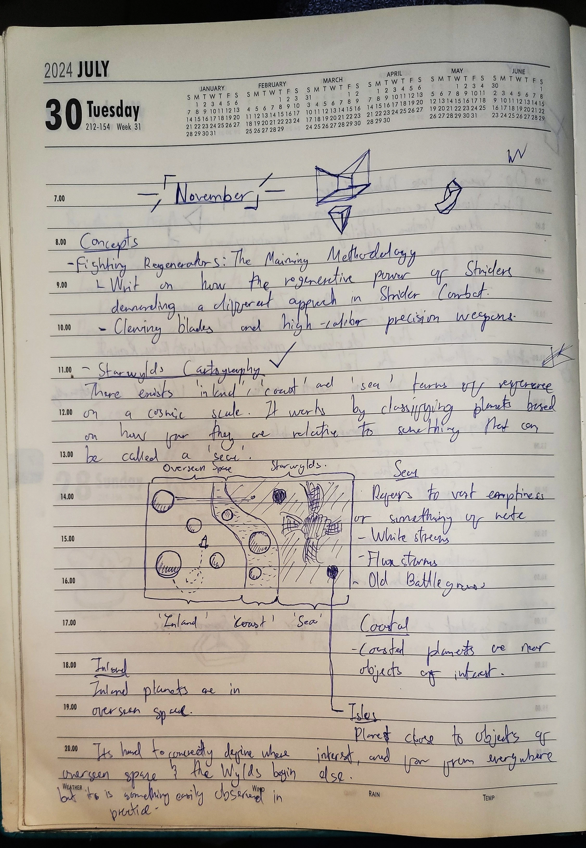 PS: I did actually find something nifty enough to share in lieu of a graphic; a picture of my second Samsara drafting notebook. I consider the paper and pen to be the purest manifestation of the craft, and this deep into the project, I’ve only come to value it even more.